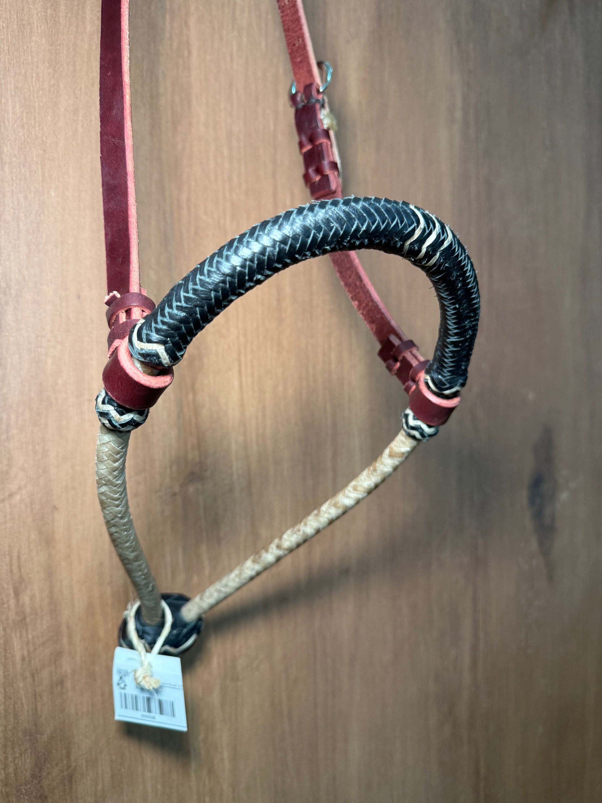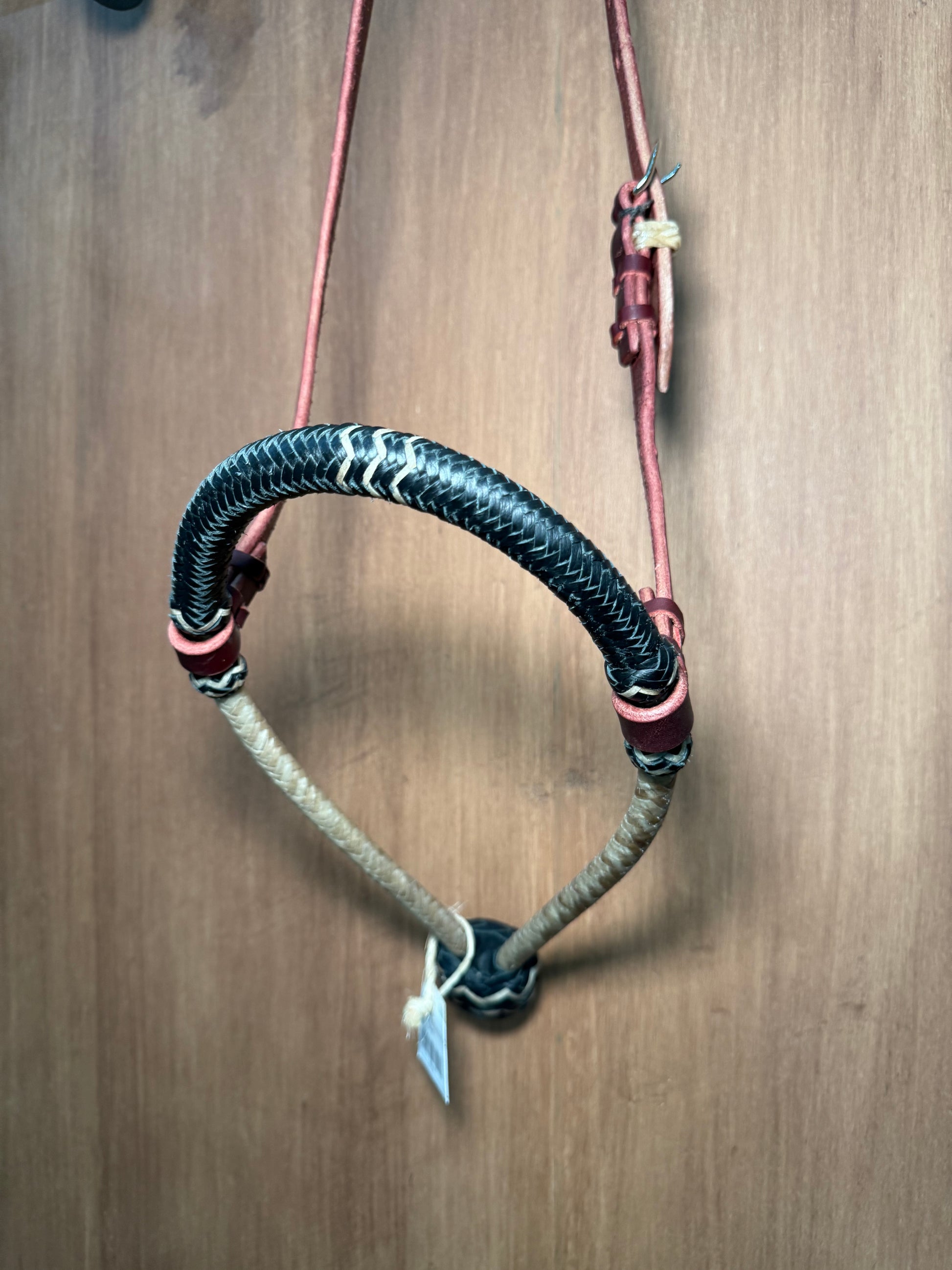 Black rawhide braided bosal 1/2” with natural accents with leather headstall
