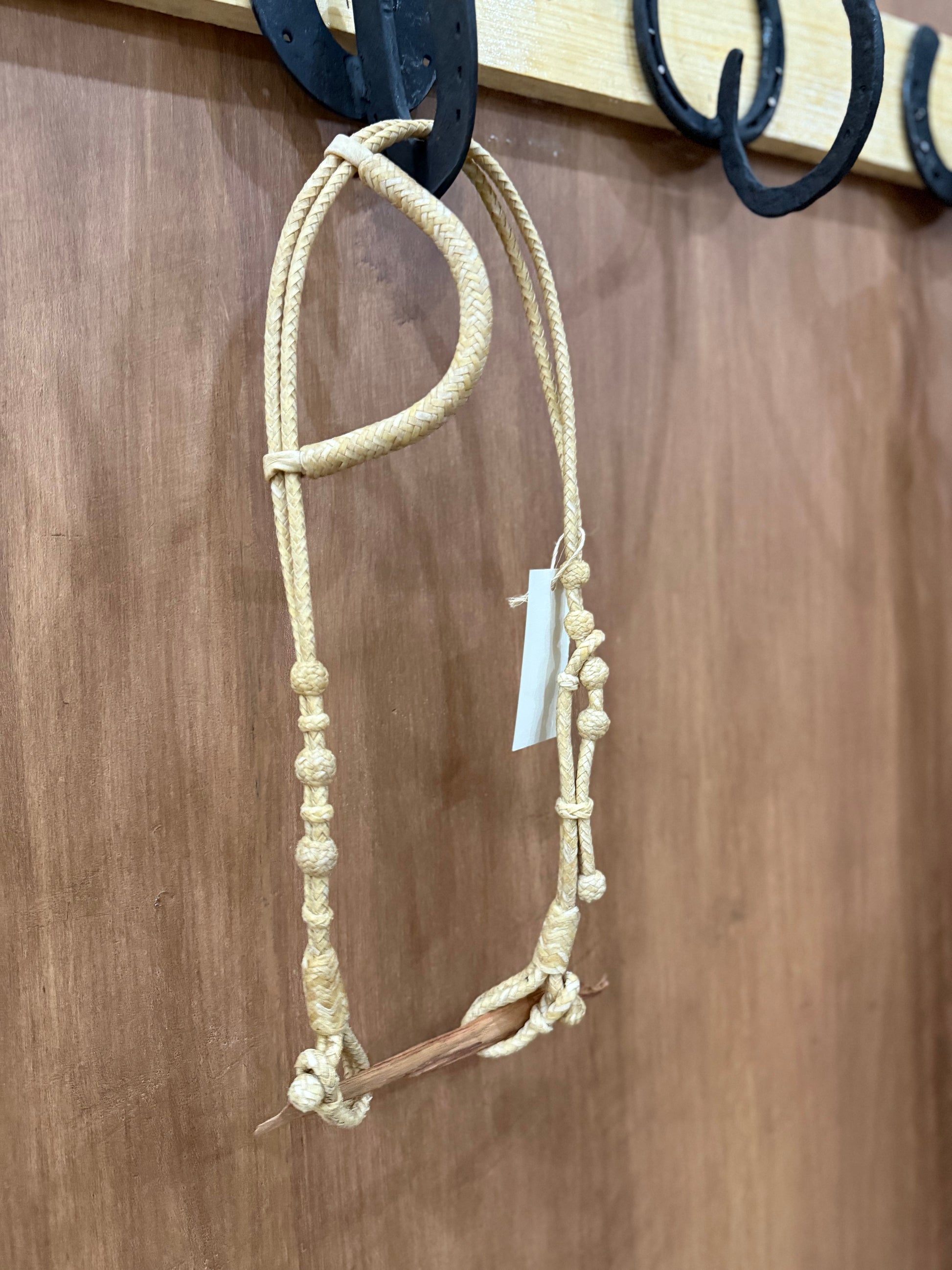 Cabezada de oreja, tejida finamente a mano de cuero crudo.