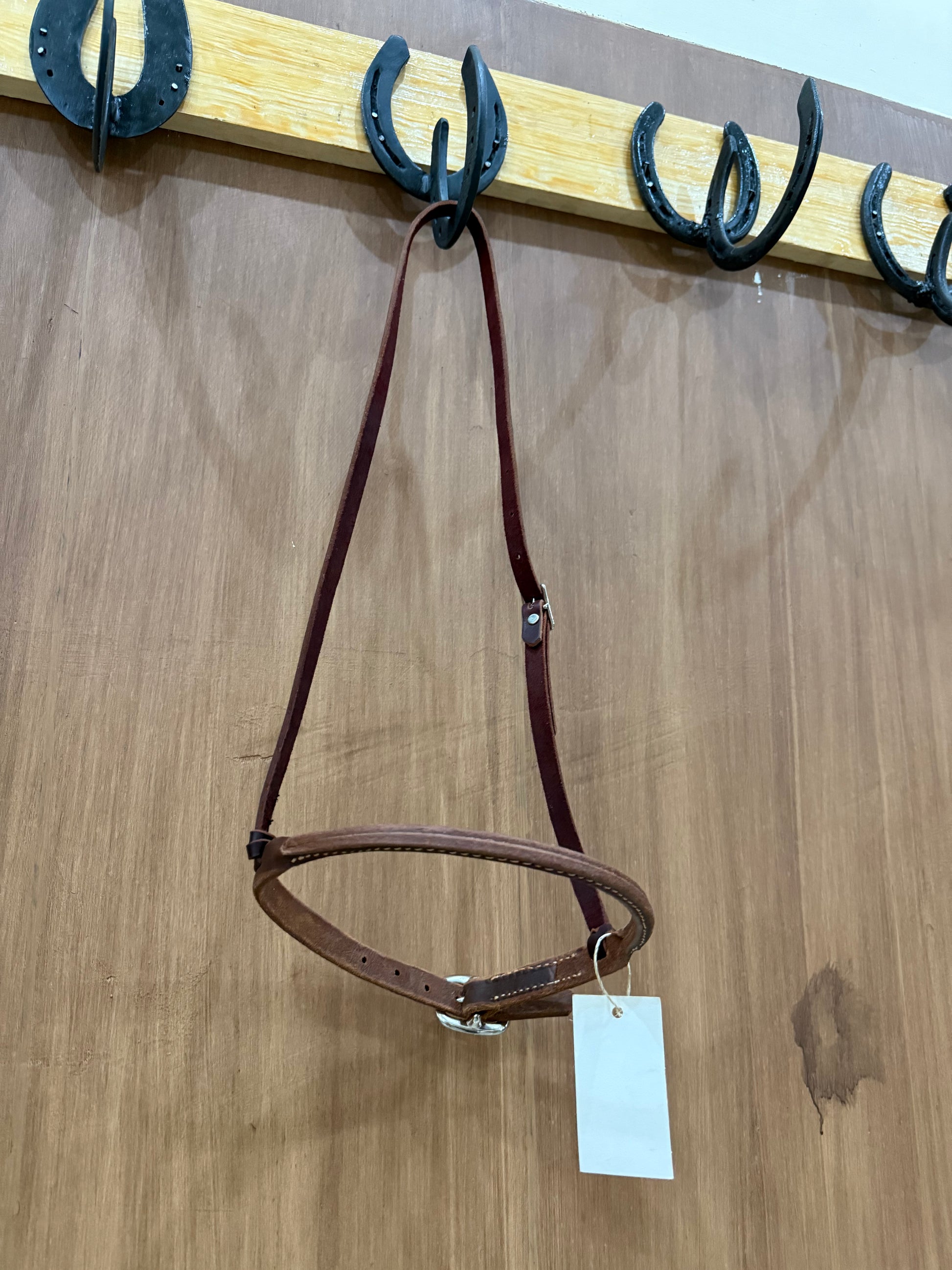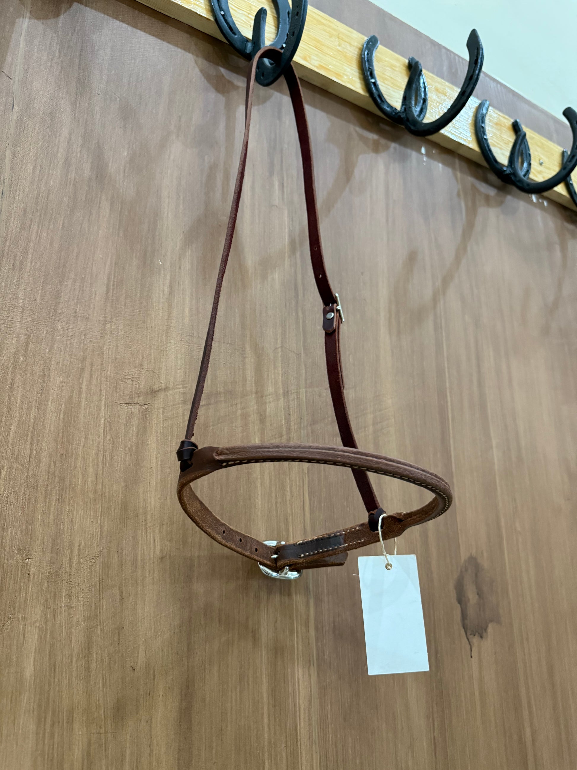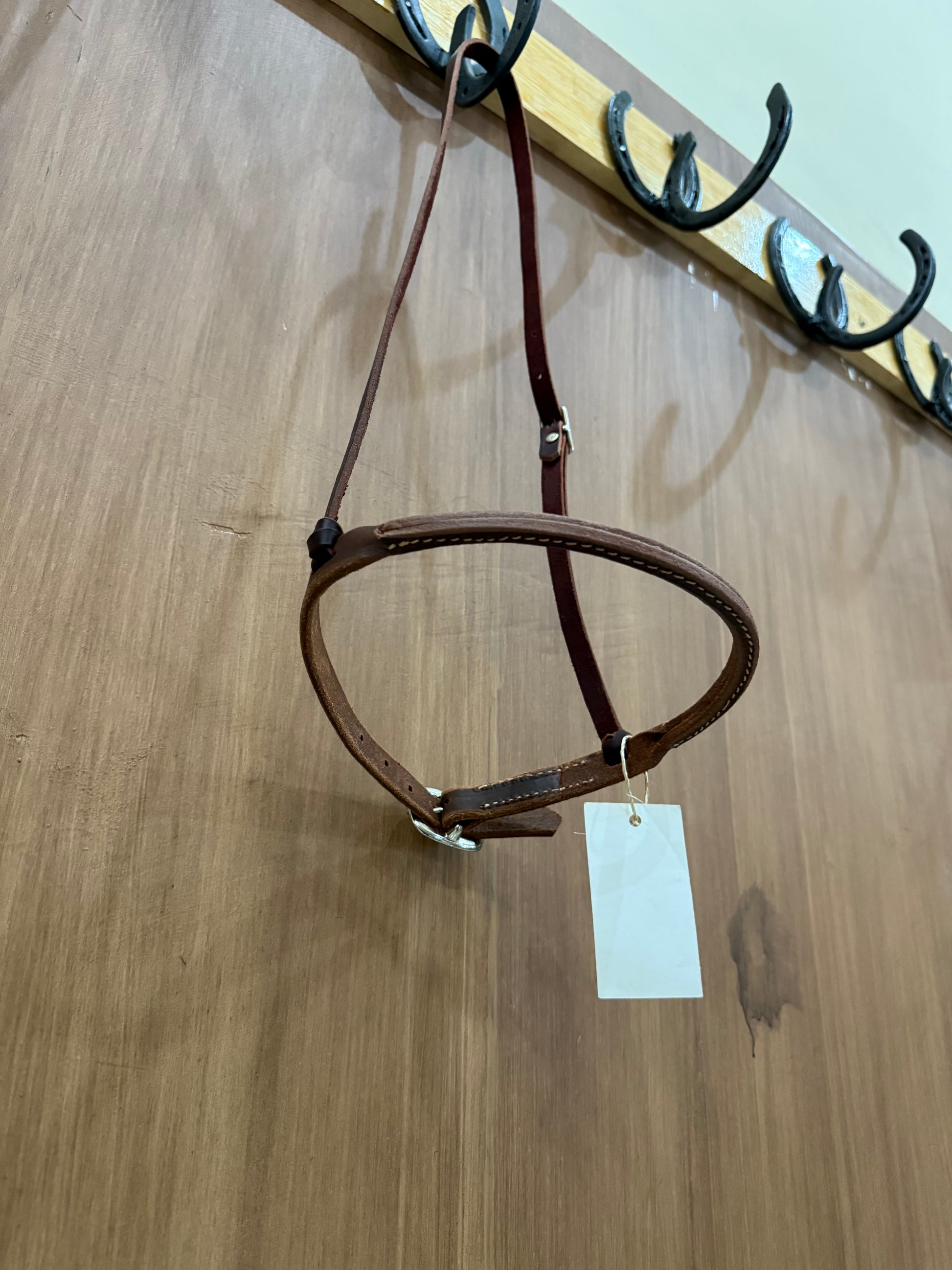 Cierrapicos o cierrabocas en piel harness, redondeado, con una cabezada sencilla con 1 hebilla.