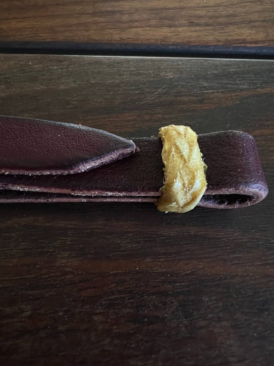 Manea de piel 1 hebilla con detalles de cuero crudo.