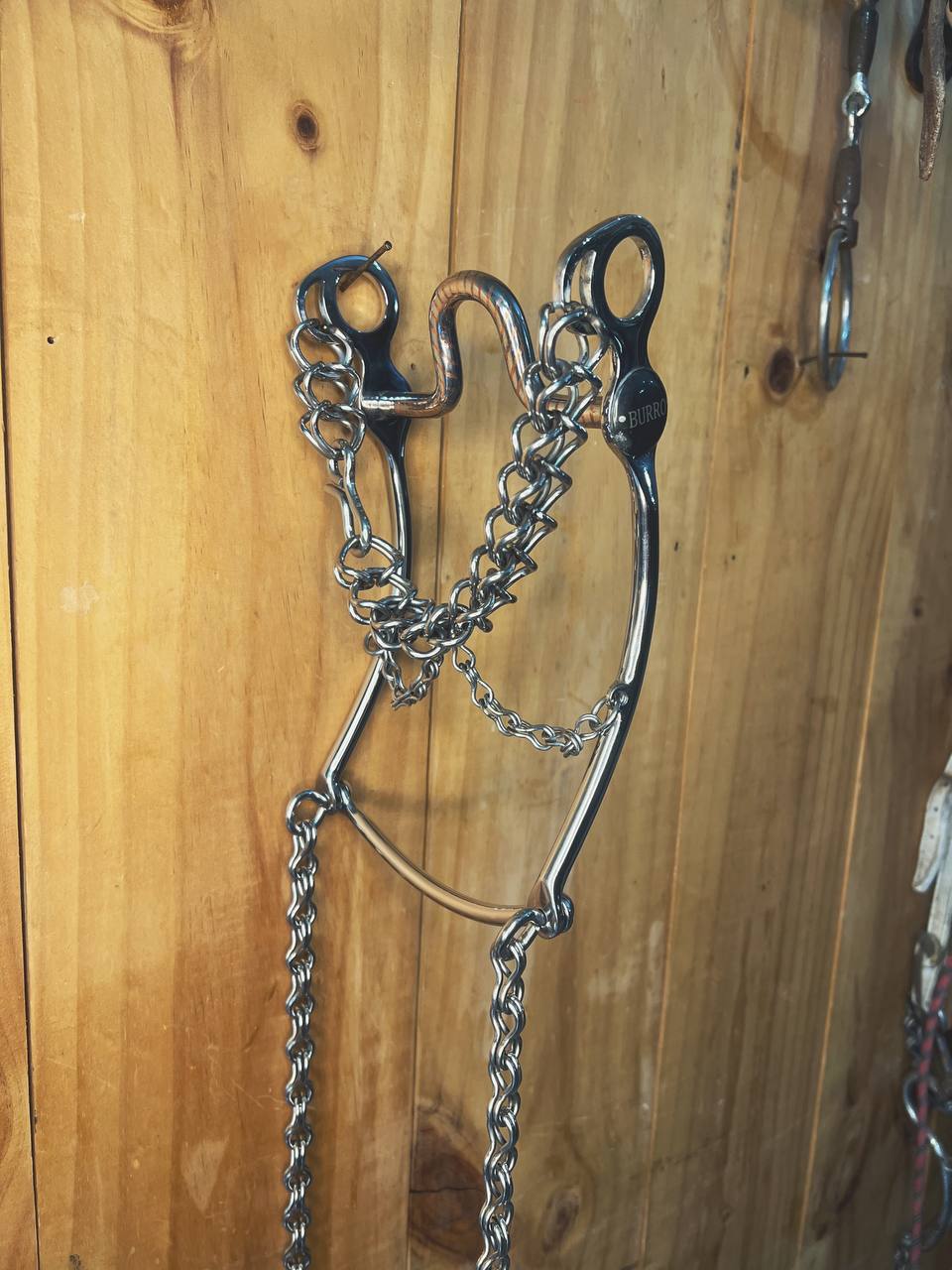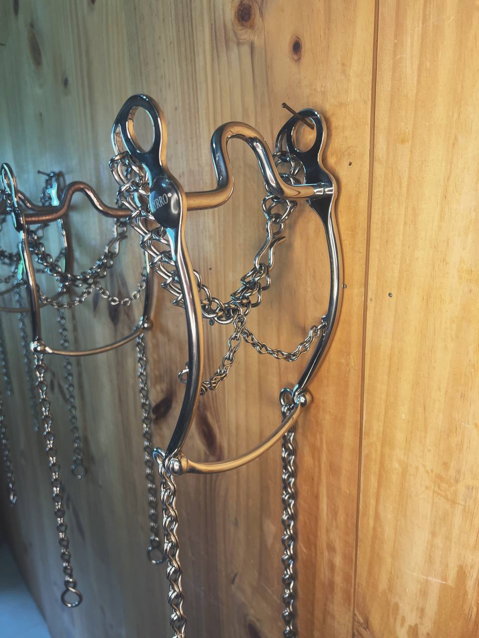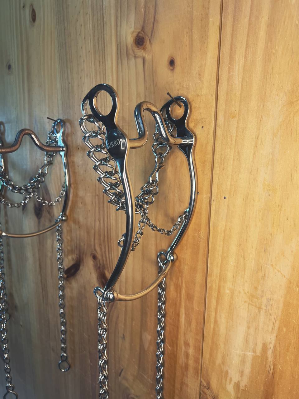 Freno charro de acero inoxidable con pata larga de 7 pulgadas de largo.