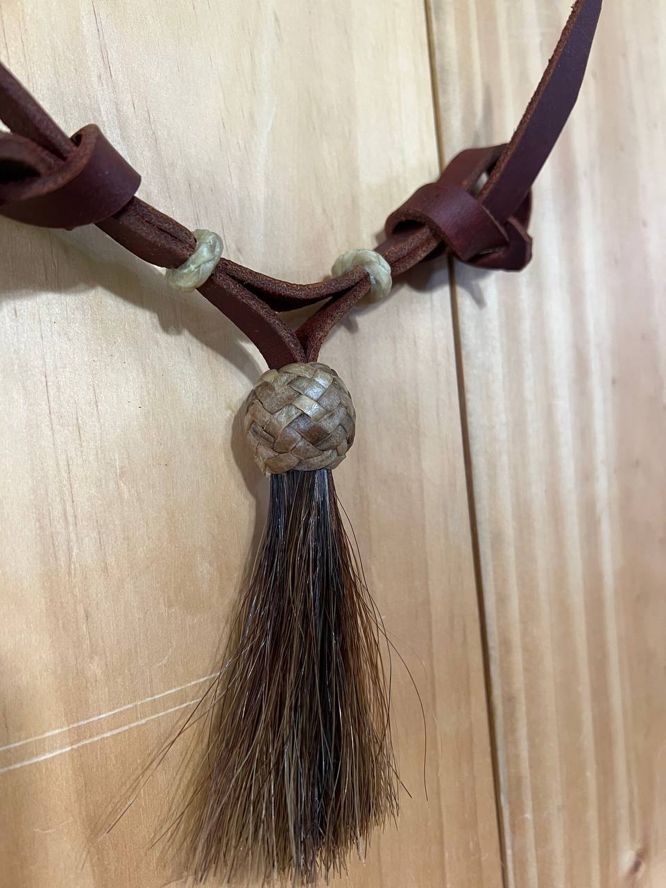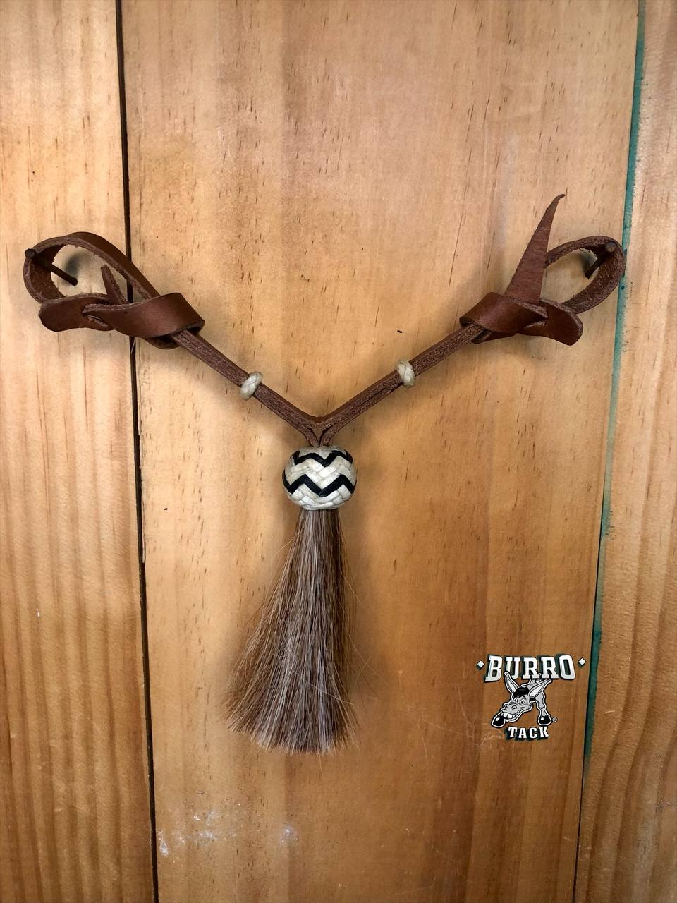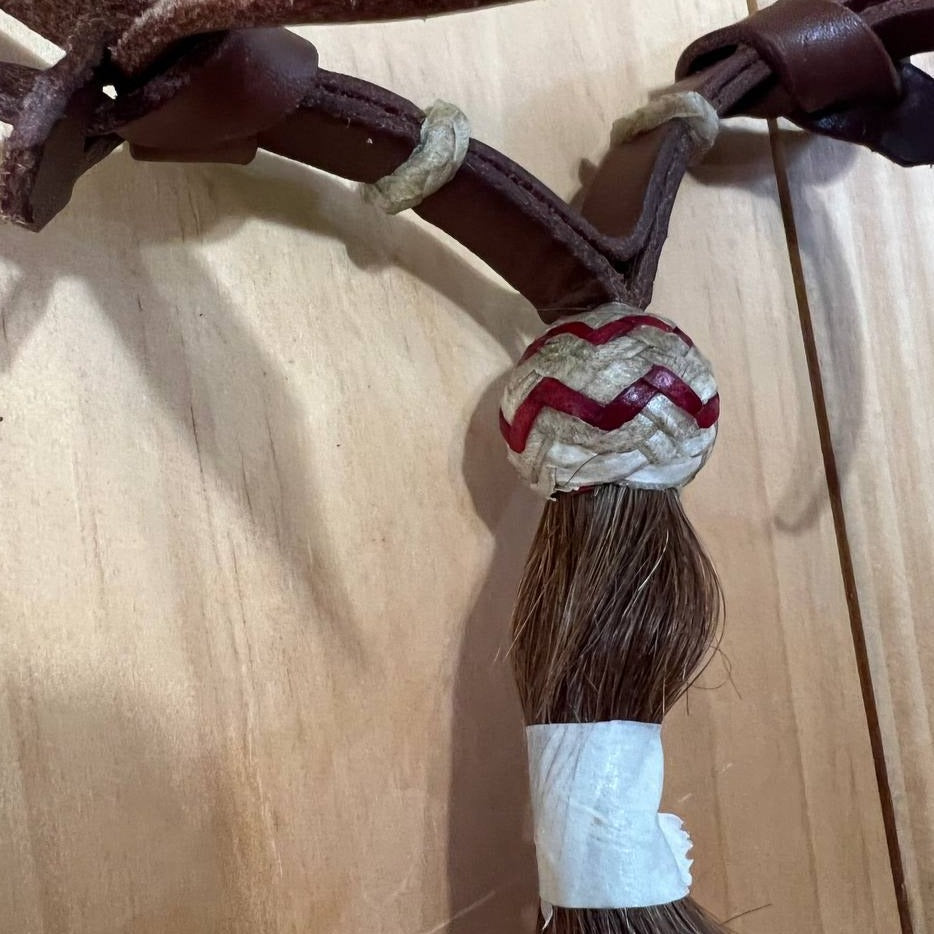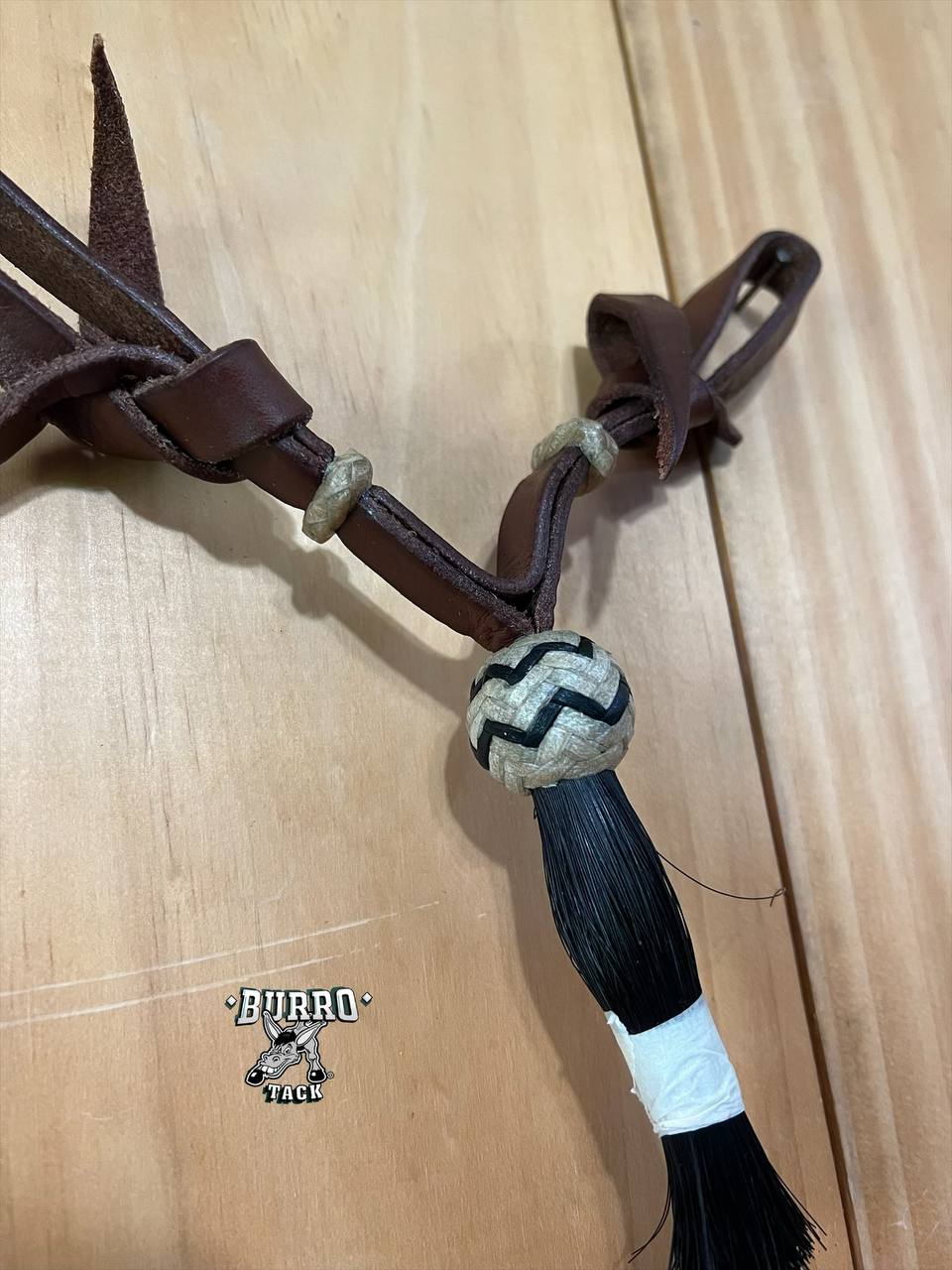 Barbada Hecha a mano, con mota de cerda y cuero crudo.