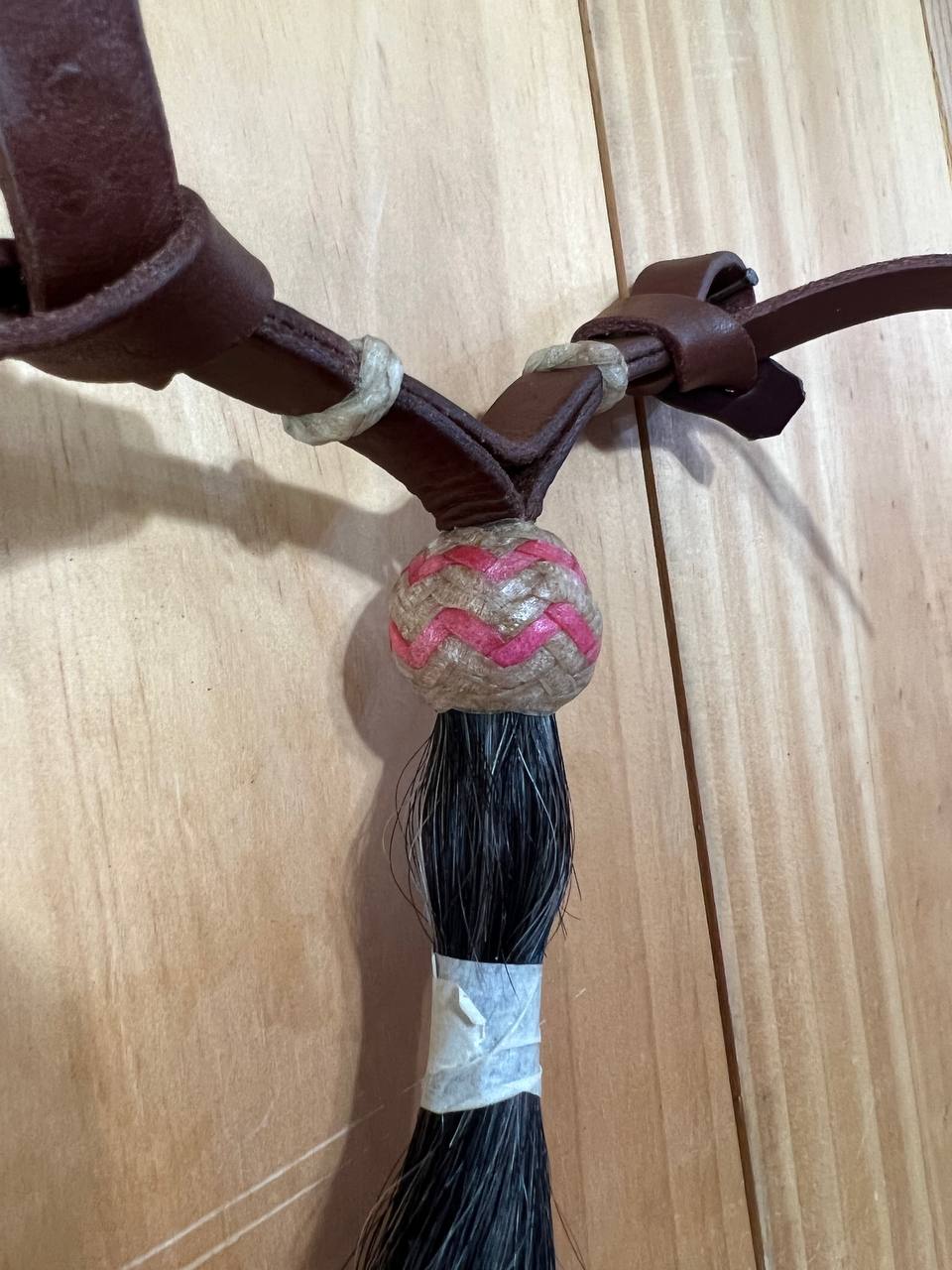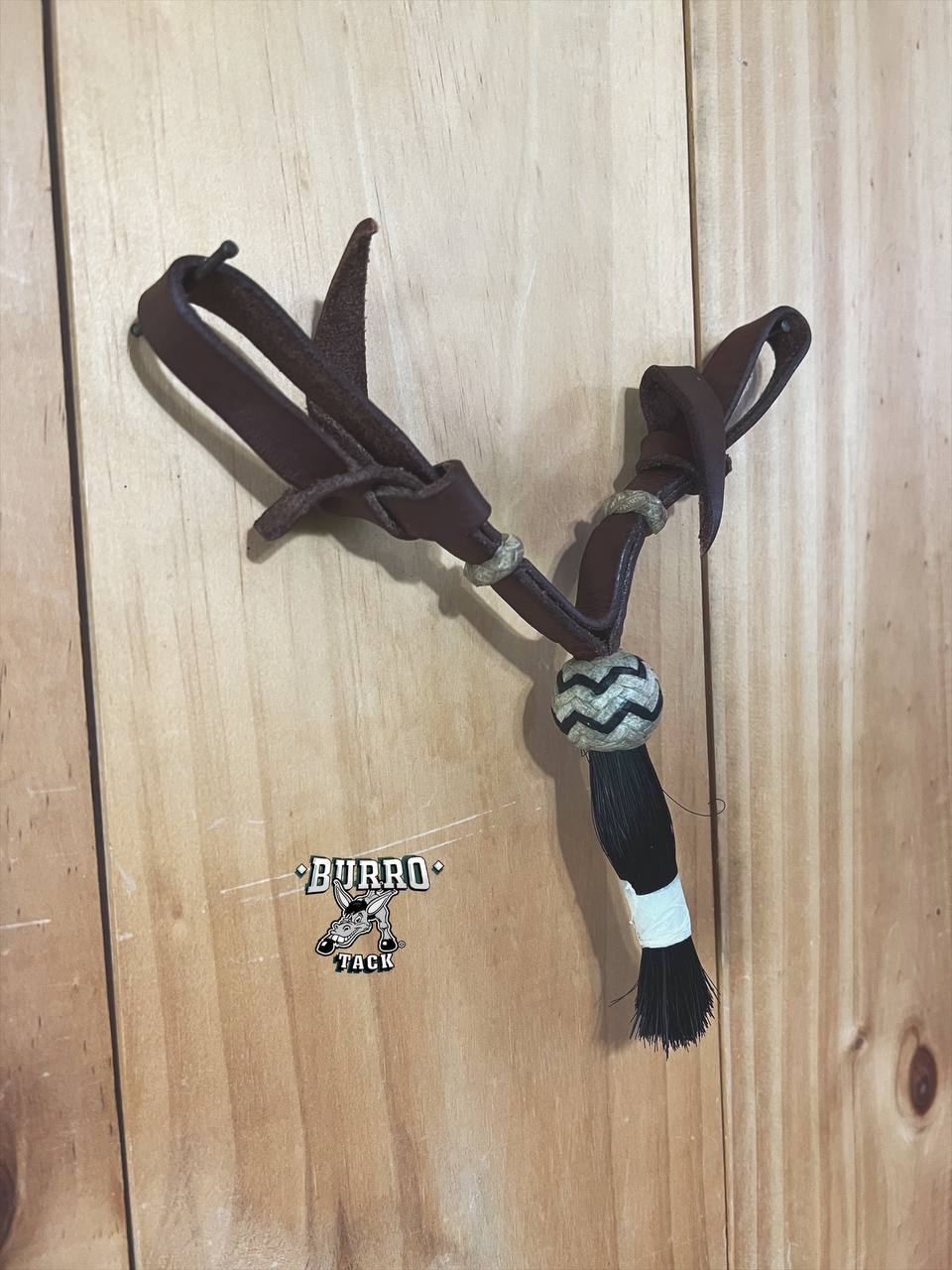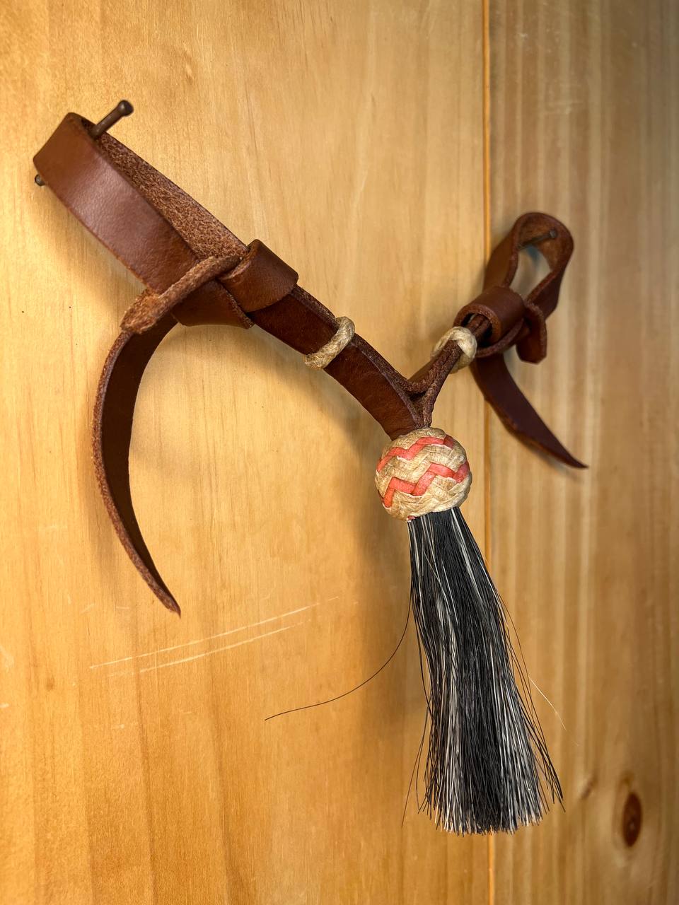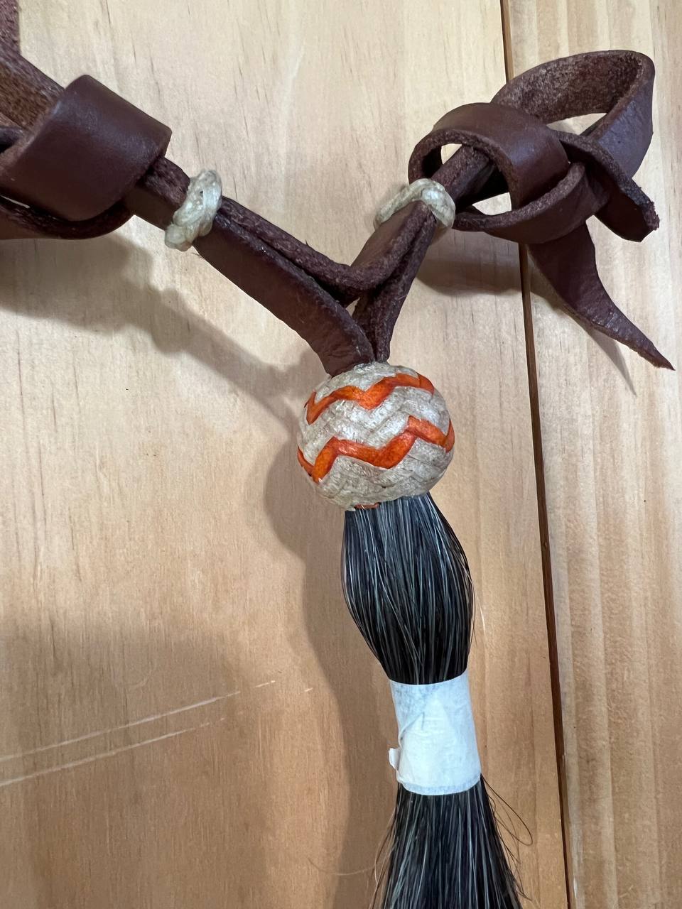Barbada Hecha a mano, con mota de cerda y cuero crudo.