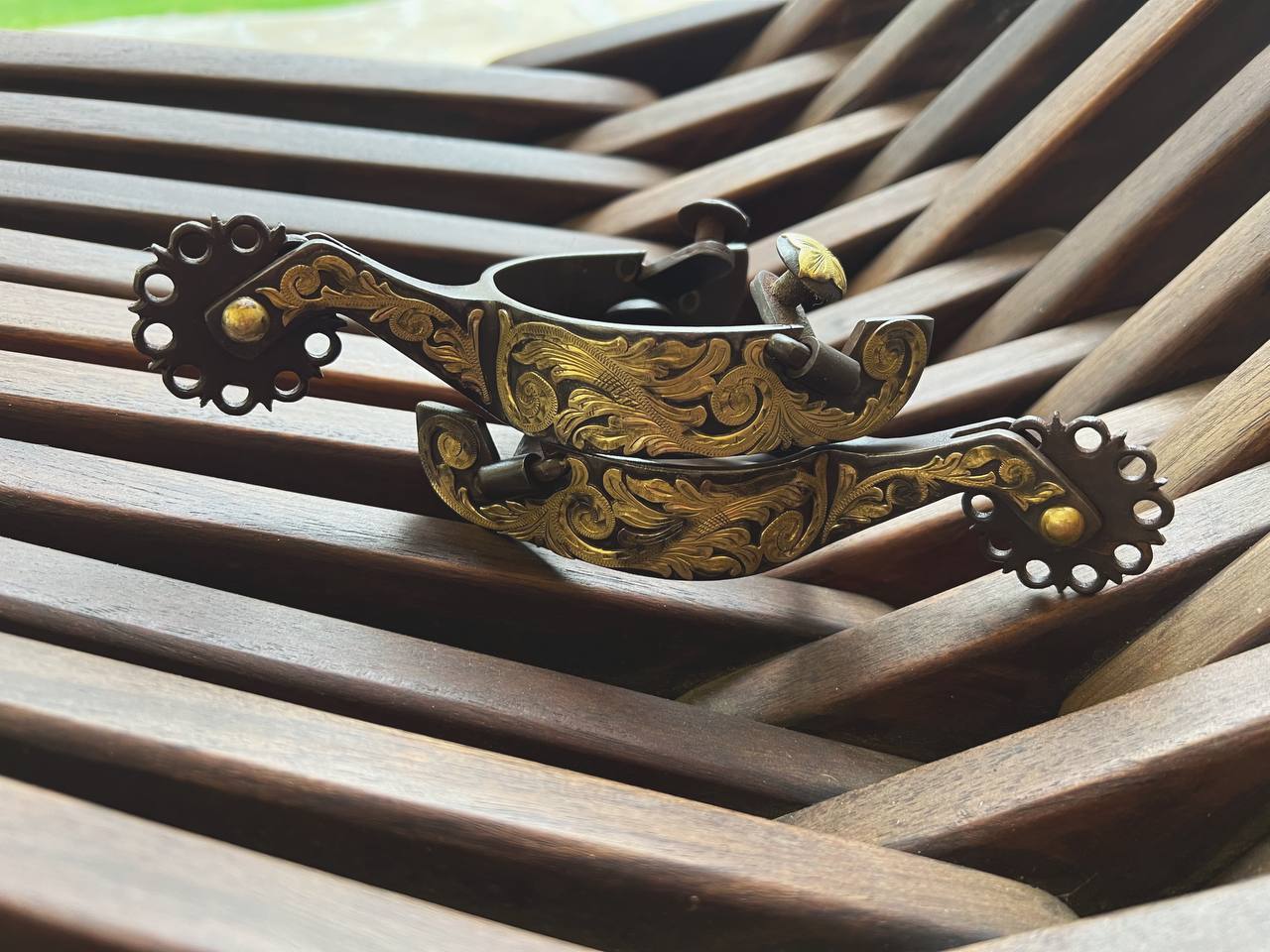 Espuelas oxidadas para niños con adornos en tono dorado.