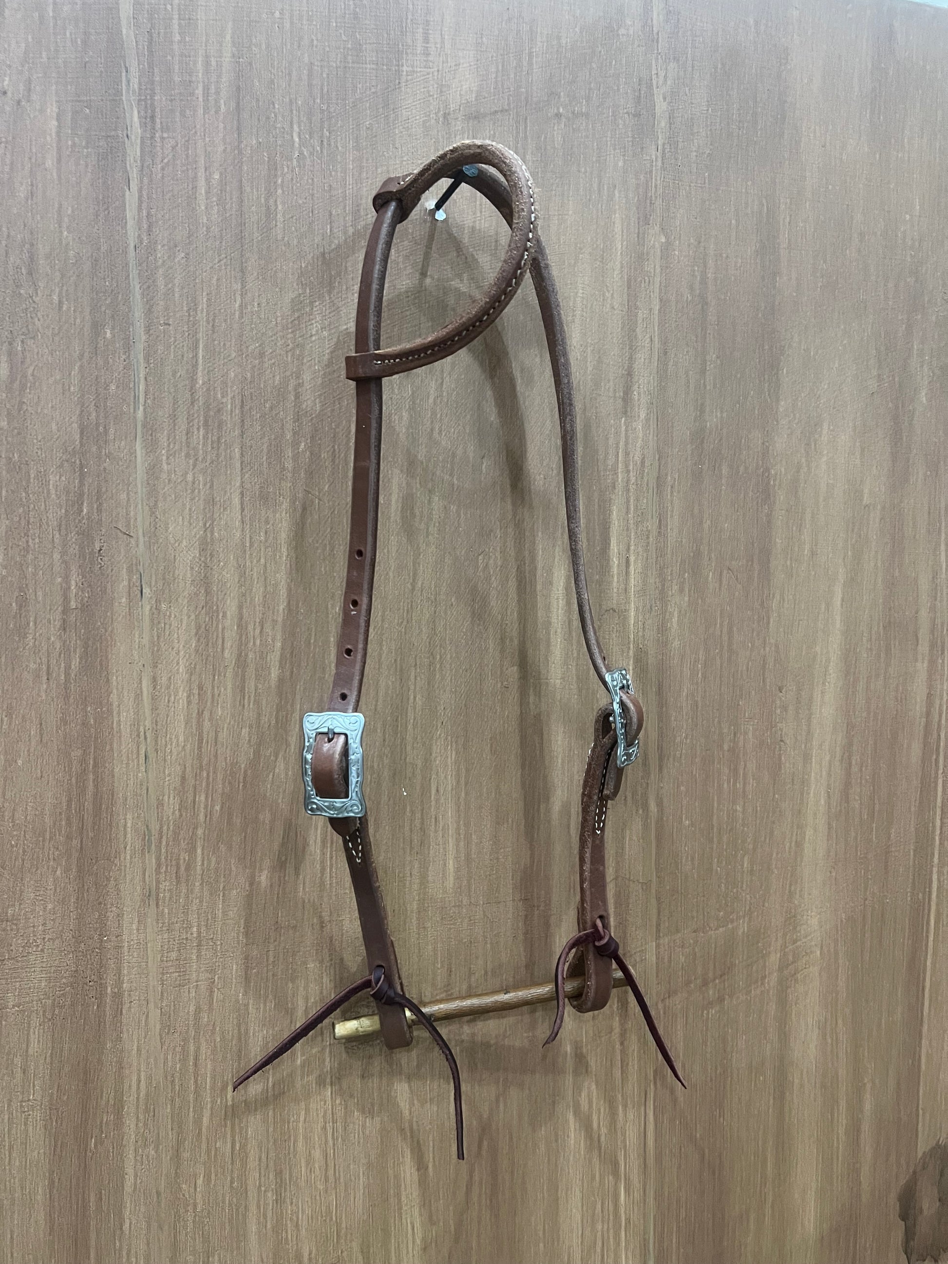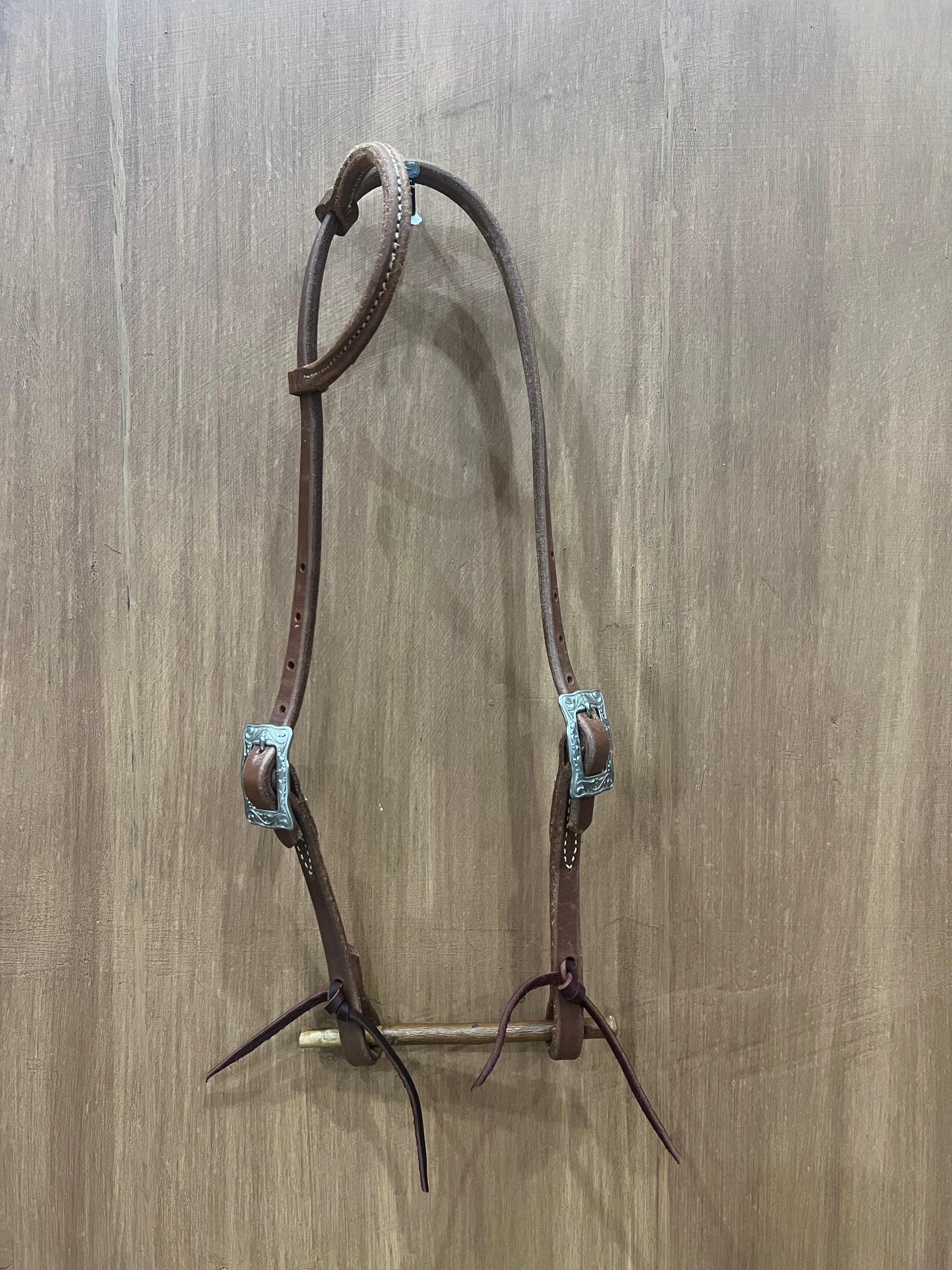 Cabezada de una oreja de dos hebillas en acero inoxidable.