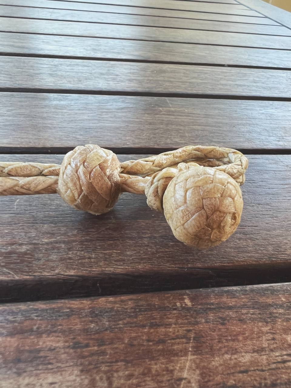 Manea de cuero crudo tejido finamente a mano, para las patas de la brida,