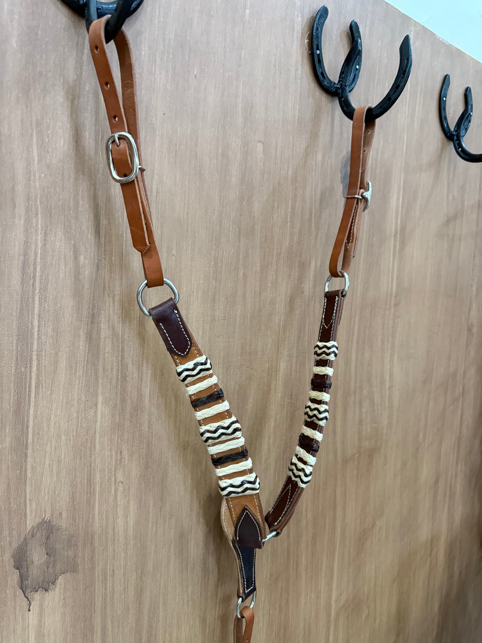 puedes complementar tu ajuar con cabezada y rienda en este mismo diseño tejido con cuero crudo, esto lo puedes hacer bajo pedido con nosotros en WhatsApp 8110660321