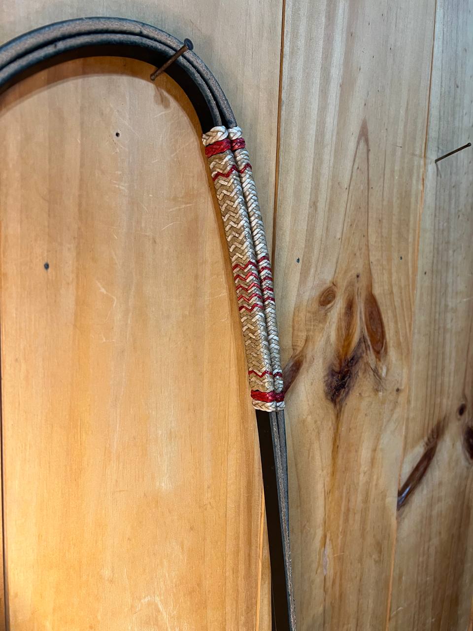 Riendas Roping de 5/8" en piel harness de color negro, con detalles de cuero crudo tejido.