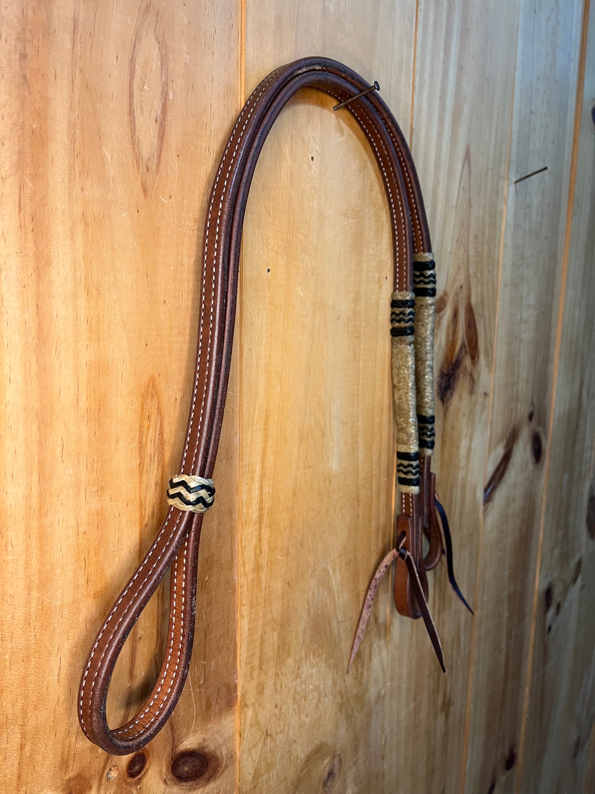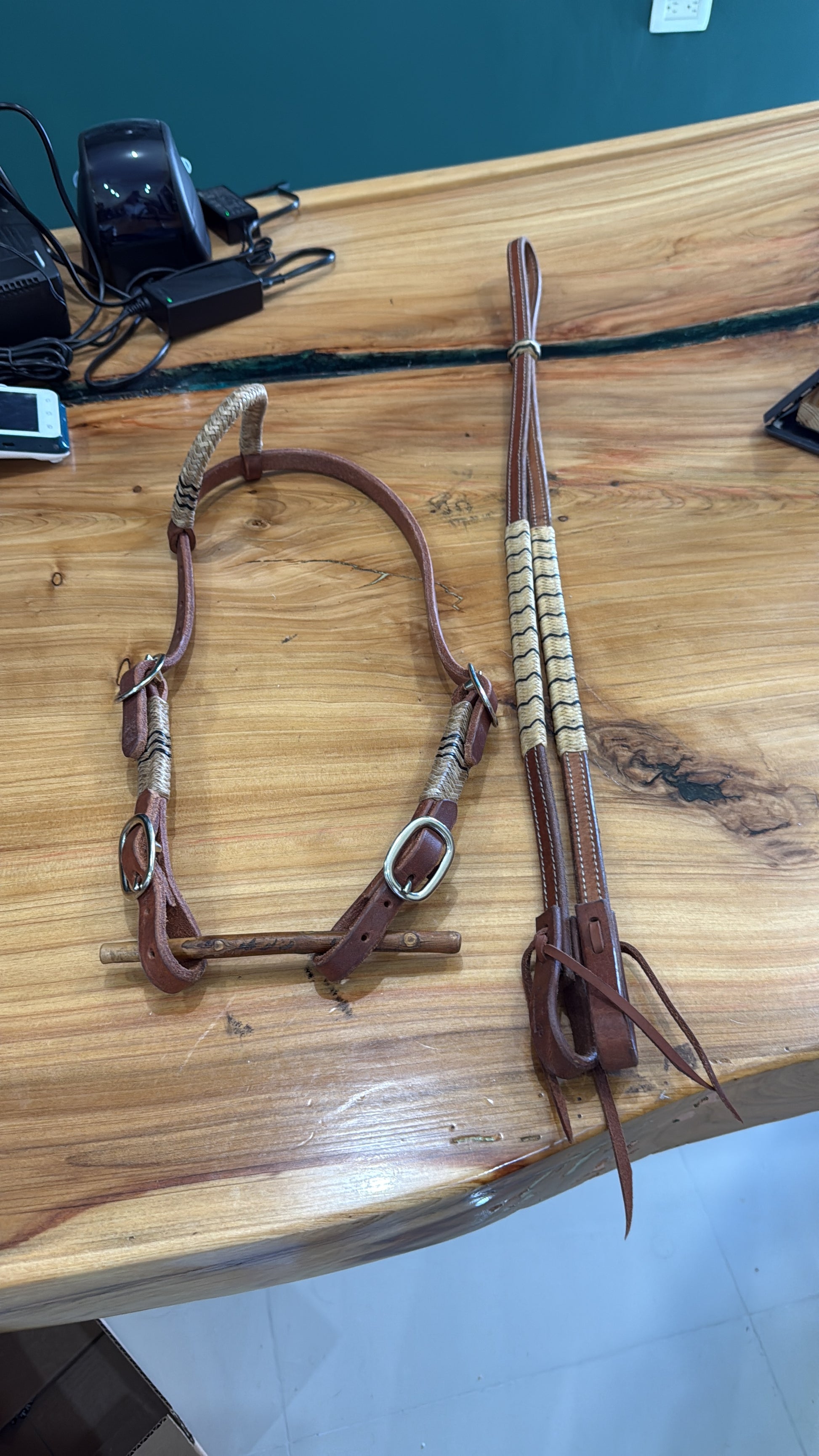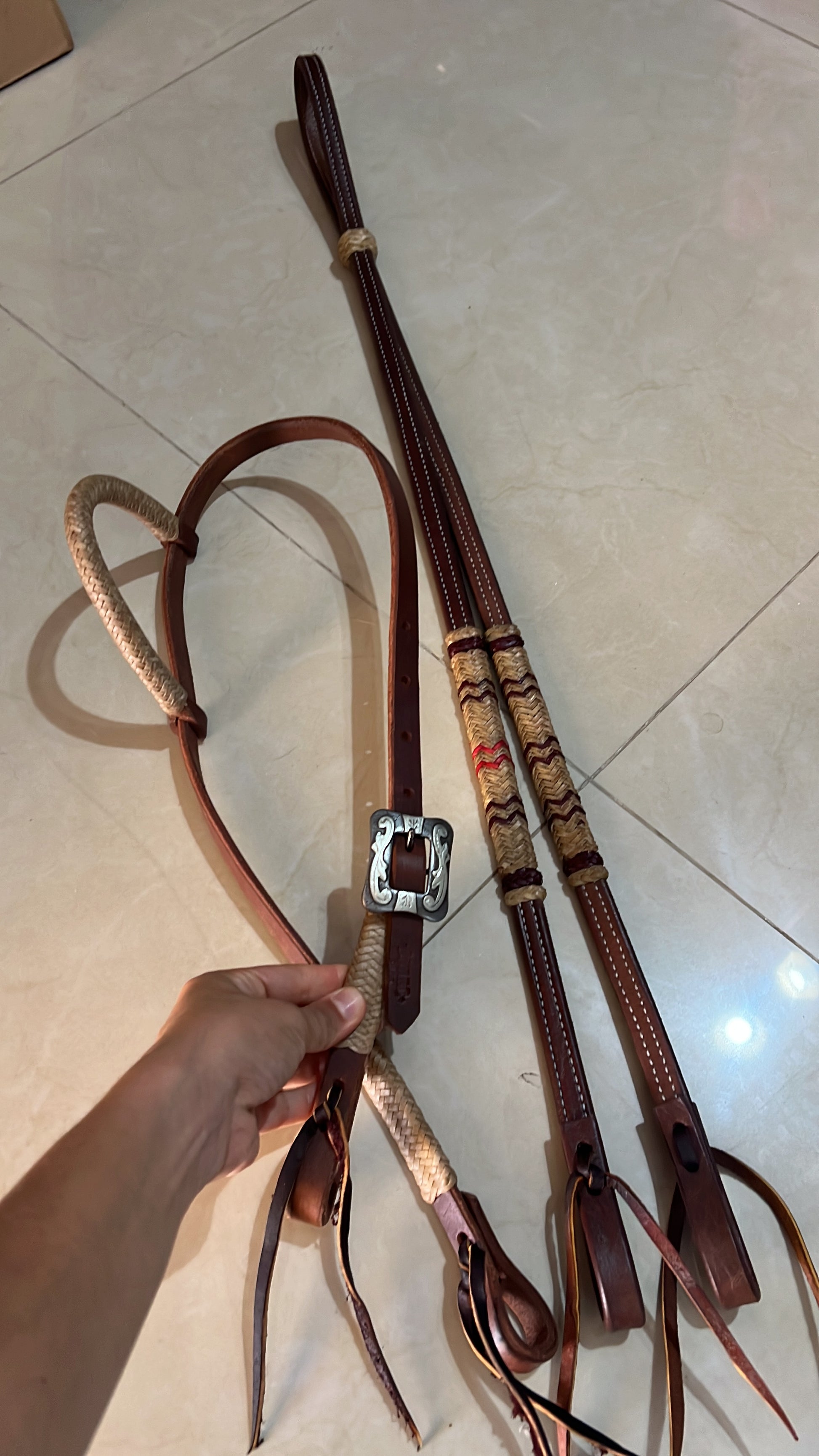 Riendas charras en piel con tejido de cuero crudo. Pregunta por nuestras opciones disponibles.