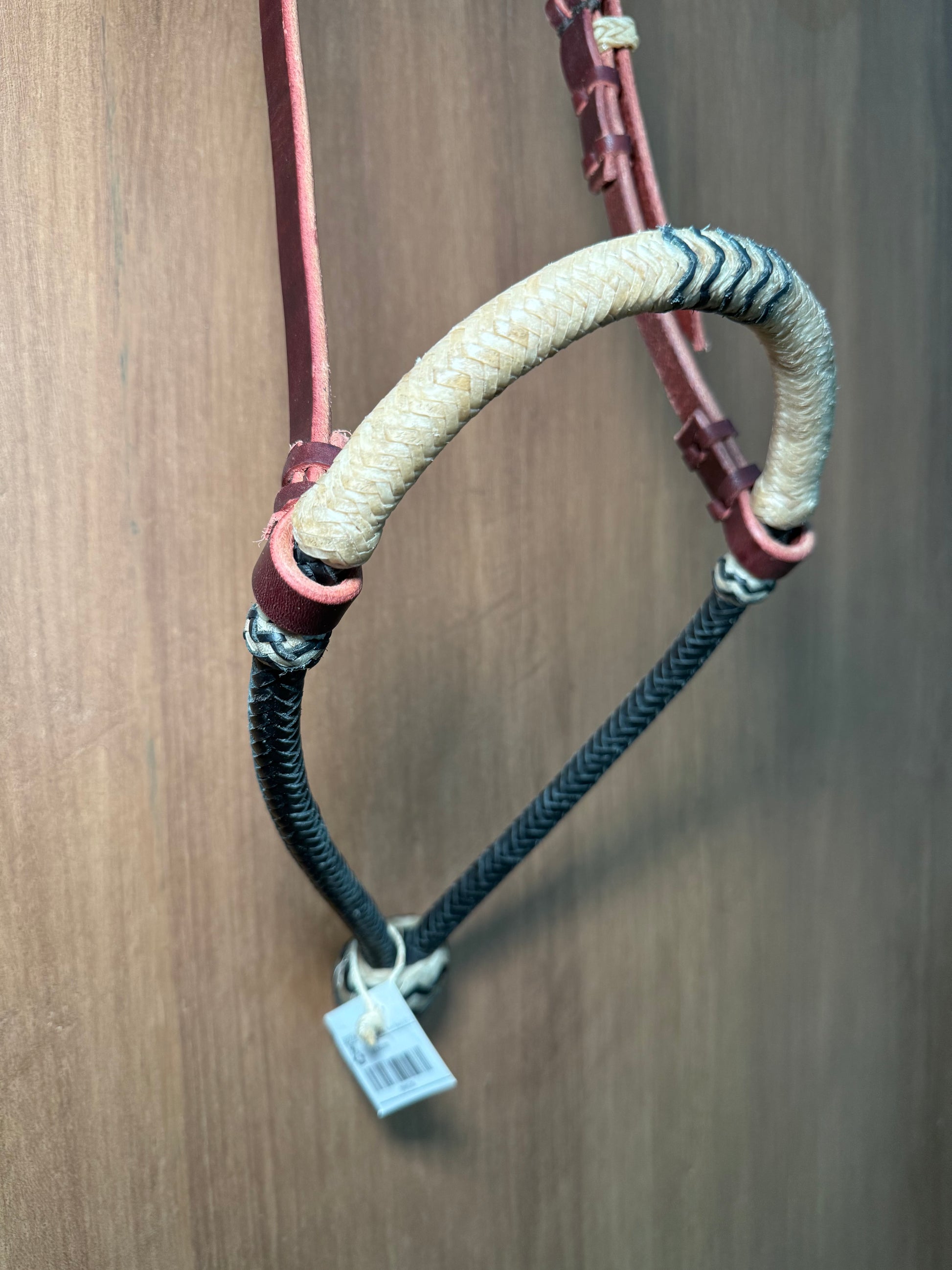 Two-tone rawhide bosal 1/2” with black accents and leather headstall